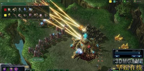 接下来,就到本场战报最精彩的地方了,唯有一个追猎者、三个狂战士、27个探测机和分基地的一个光子加能炮的TheLittleOne如何能抵挡的住来势汹汹,连绵不绝虫族大军的强势进攻——此时的Zpux已经有24个升级过加速的异化虫和7个蟑螂,并且后续兵力源源不断。然后,意想不到的是,仅靠这么小兵力的TheLittleOne竟然抗住了Zpux的强势进攻,源于Zpux的大量兵力竟然都消耗在了进攻路口的战斗上。虽然TheLittleOne的路口防线还是被突破了,但是奋起反抗的主矿和分矿小小探测机配合着新造出来的狂站者和追猎者,实实在在的抵挡了这一波凶狠的进攻。双矿较早的TheLittleOne迅速恢复了经济开始出兵,继而反压一波,结果虫族分矿的少量兵力和3个脊刺爬行虫把神族抵挡了回去。到此,双方前期对抗结束,开始发展高级兵种。在发展过程中,Zpux不断的侦查TheLittleOne是否开其他的分矿。(线线语:因为路口狭窄,只可以放任一个蟑螂通过,此时一个蟑螂打一个狂战士加一个光子加能炮,是完全打不过的,所以,死一个蟑螂,虫族就消耗一个兵力,然后神族的狂战不仅能抗而且有神族护盾,当虫族一个接一个上来的时候兵力完全消耗在冲动的过程中,只有一个蟑螂或者异化虫可以和对方打,然后承受的却是后面炮台的攻击。虽然虫族大量兵力冲破了神族狭窄的防守路口,然是进去的兵力已经完全不多,从而神族靠少量兵和探测机的配合操作,把虫族抵挡了回去)