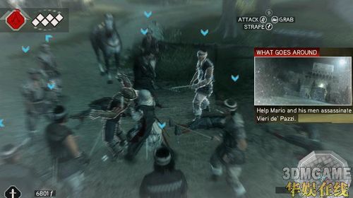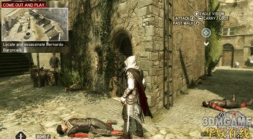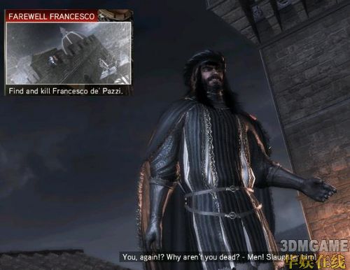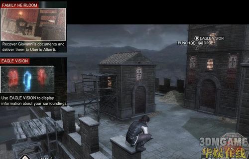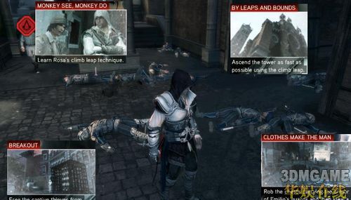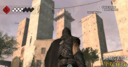 再来主角到处玩后回到家发生老爸等家人被抓事件,EZIO得想办法爬到监狱上看一下老爸