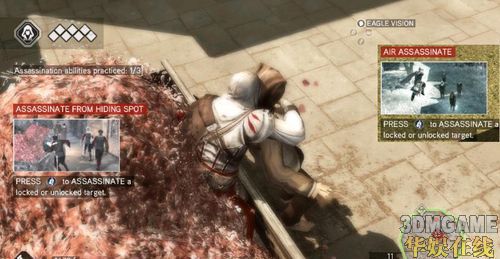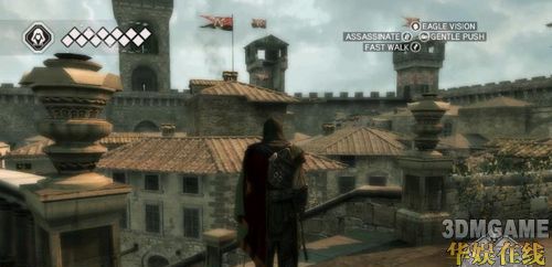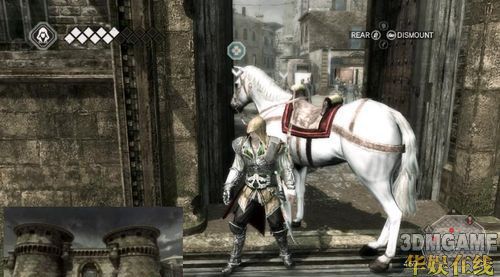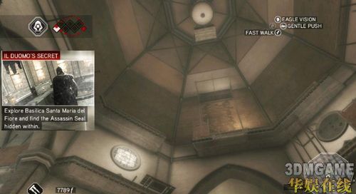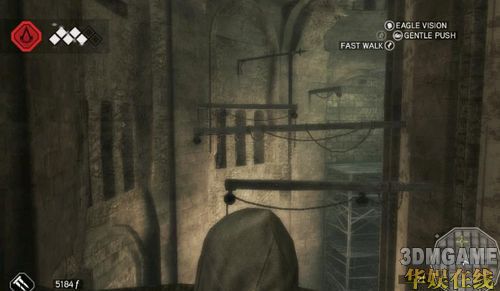 这边有点小难,得研究一下如何跳上去,初玩者可能会发现这个EZIO也未免太神了吧,这样也能爬上去,后期还有更扯的地方都能摸上去才是利害。