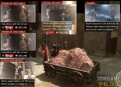而那箱东西就是EZIO的基本刺客装。信的内容其实是整个城市有那些人共谋叛变的
