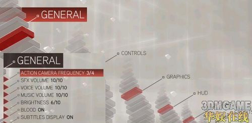 再来HUD是设定主画面上要不要出现血条、钱数、警戒值等,嫌画面乱的可以全关掉