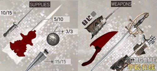 弹药和补给就是一些飞刀啦、毒霚弹啦、和血瓶,而它们的数量是和护甲有关