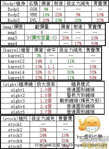 添加了JAKOBS的部份数据,经测试,除了STOCK之类后坐力无法以我的能力测得以外,枪身,瞄准镜,弹匣是和ATLAS的属性一样的,我把测试后的枪管数据发上来(基本上来说后坐力的属性是差不多的)