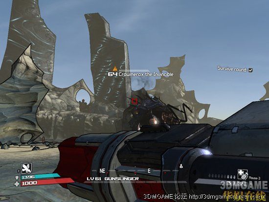 1。换上你能找到的爆炸威力最强的火箭筒。瞄准如图所示的地方。多试几炮就找到了。很多同学误会,只要不停开炮打那根刺就行,所以就瞄准那根刺不停的打,发现龙虾并没受伤。其实不是,炮弹必须在龙虾仰天后下来回到正常位置那一刻打中那根刺,爆炸才能反弹到背后的弱点,才能打到血。龙虾站位的角度,不是很重要。发炮时机是最重要的。