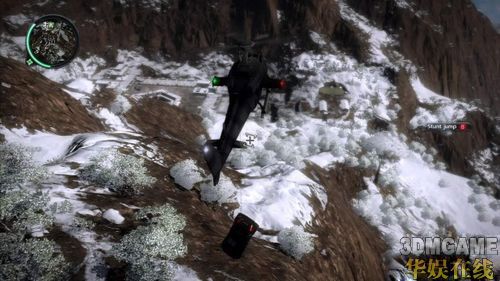 说到这个钩索真的可以算是本游戏的精华所在了,这次的新道具钩索除了可以让你快速往前移动外,当然也能让你爬上高山,而这些只能算是它的附加功能而已,它的主要功能可就很威了:钩索除了可以用来做拖吊运输外,它还可以让你在众多敌军追逐时牵制一下敌方的载具,甚至可以将敌人连接到一下奇怪的地方做出一些KUSO的击杀动作。所以在这游戏中钩索用得好的话,真会提升不少游戏时的乐趣呢。
