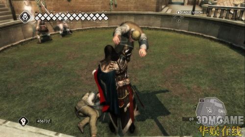 于是Ezio跟练习场的大叔来一场街头卖艺