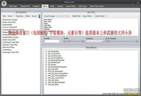 Weapons是枪,Items是护盾、职业MOD等其他物品。要导入哪个类型的东西,就点开哪项。
