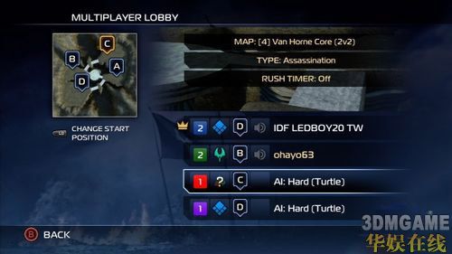 对战模式分成单机对战(skirmish)与连线对战(Xbox live)两种,含AI最多共4名玩家。规则设定非常自由,可设定1对1、2对2、甚至1对多,每个电脑AI都可设定难度等级与阵营,还可设定禁止快攻。