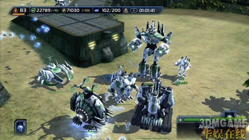 各阵营的大型兵器种类多样,实战中不太可能全部出动,必须视战术需求而生产,才能在最短时间发挥功效。有名字的是ACU,正下方的是一般机器小兵。
