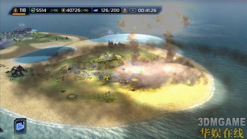 视点拉远成为卫星视点,可见到图中央有个数字71的白圈,只需点这个白圈就能一次选取上一张图的71个陆空单位。这种群组的选定方式虽然不若键盘方便,但已是首开先例的创举了。