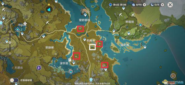 此任务没有任务提示,具体地点在下图标出,先去四个红框开启机关收集任务道具,集齐后返回NPC处与NPC对话,与NPC对话完成后,到下图白框处开启宝箱机关,之后再返回客栈交付任务