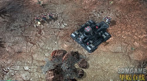 这时Morrow终于发现了对手的意图,马上在路口迅速补上碉堡作防御,同时也拉农民过来协防。但Glad并没有急,先用少量枪兵2路拦截干掉了正在分矿打岩石的4个枪兵。(岩石2000点生命值很耐打,前期不建议大家去硬A)好不容易快要起来的分矿就这样前功尽弃。