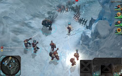 《战锤:战争黎明》系列是以《战锤40k》为背景改编而成的即时战略游戏:在《战锤:战争黎明2》中,玩家可以指挥星际战士(Space Marine,未来世界的人类菁英)、欧克兽人(Orks,香菇种的绿皮兽人)、神灵族(Eldar,科幻版的精灵)与异形虫族(Tyrannid)等各种风格迥异的部队,与异族展开大战,在最近推出的资料片《混沌崛起》还追加了浑沌星际战士(Chaos Marine)这个大受欢迎的种族。