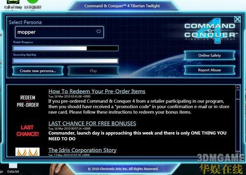 3月16日,命令与征服4开始开放下载,在下在EA官网花了59.9新元订购了这款新的命令与征服系列游戏,经过两个小时的下载后,玩到了这据说是整个系列游戏结局的《命令与征服4》
