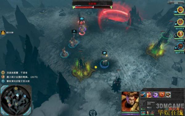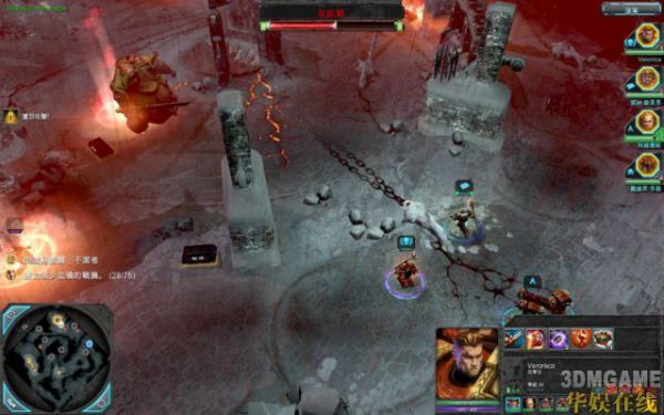 走到如图的位置就会自动启发任务;消灭混沌武士;他会不断的召唤出来恶魔之柱来补充自己的血,还有召唤士兵;集中火力攻击吧;消灭它就可以