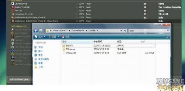图5:在steam的游戏目标下面X:Steamsteamappscommondawn of war 2GameAssetsLocale 里面看到Tchina 和 english的fodder