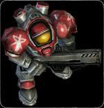 掠夺者(Biological - Marauder):这次枪兵多了个大哥,掠夺者给枪兵小弟提供肉盾,并且有着不错的攻击力和射程,还能对被攻击单位造成减速效果,直接导致神族狂热者之类的前期强势单位相当郁闷,从此几个枪兵被几只狂热者追着跑的画面估计很难再出现了……掠夺者改变了人族前期兵种结构,往常人族前期只有枪兵(后来会加入护士MM)独撑局面,一般都是在家死守(打虫族除外),撑到后面的坦克出来之后才敢展开行动;而现在,枪兵配合掠夺者成为了一个很有威胁的组合,操作得当的话,不输给同等数量的狂热者+追猎者,面对虫族小狗+小强也可以面无惧色(人族终于抬头了T-T),不过不多的血量加上缺乏潜力,此兵种多出现于前期的战斗,中后期心有余而力不足,这点和重组小强以及神族哨兵是不一样的。