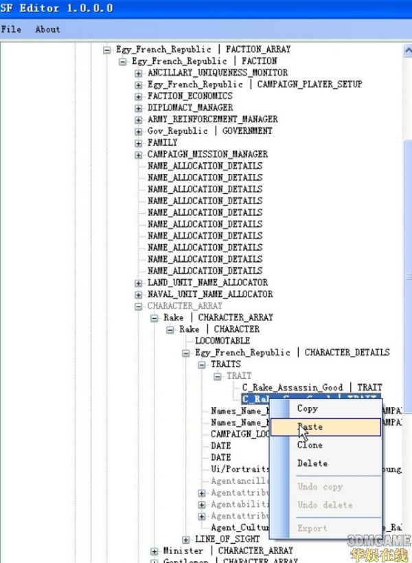 下面举两个例子;如下图 埃及开局 我们先修改如下图的法国间谍 间谍 名字为TRISTAN LEFRANC;那么我们就去 按照上面的步骤找FIRST NAME 是TRISTAN,LAST NAME 是LEFRANC的RAKE名标签