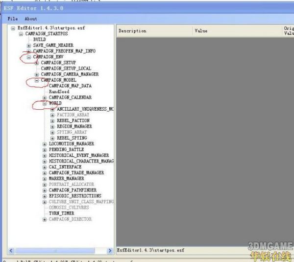修改的时候只需要 修改指定文件夹下的的startpos.esf即可;但是要注意备份