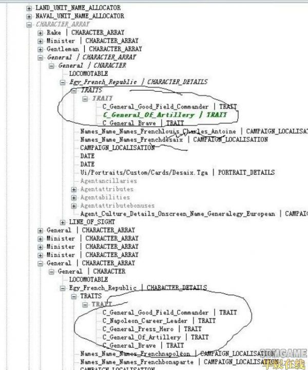 先找到路易将军的属性栏,下图划圈的部分;然后在找到拿破仑将军的属性栏