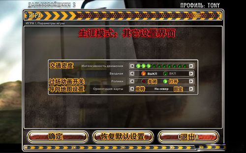 以下为游戏主题画面各个设置项目的详细图文汉化,俄文实在看不懂,部分功能只是个人猜测而已,汉化有误的地方请指正。以后将陆续放出其它游戏界面的汉化,也包括如何开始游戏及玩任务(包括竞赛),都是非剧情教程,至于剧情,那就等高人了。其实如果看不懂剧情的话,应该会错失一些隐藏内容的,甚至无法完成整个游戏剧情。