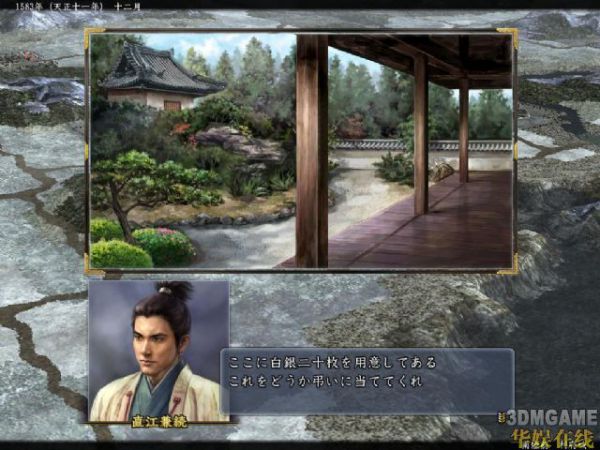 史实开局,游戏时间进行一年,玩家手下有直江兼续(身份无所谓,大名也可以),换月之际,直江兼续不是出阵状态(包括工作队运输队)