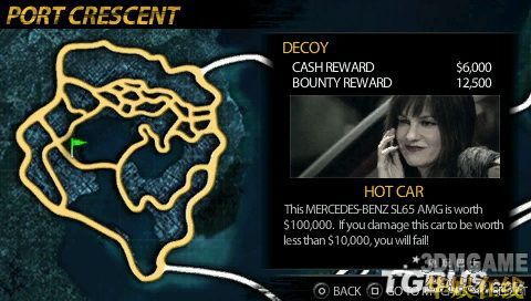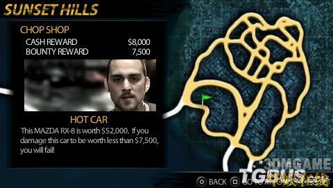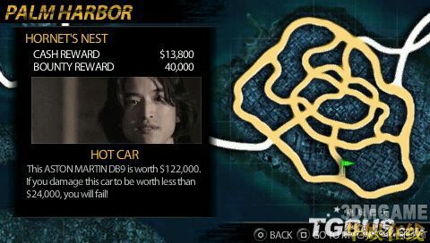 hot car任务, 开始前会有一段录像后,游戏开始,首先根据GPS的指引去指定的地点,进入绿圈后停顿一下,再把POLICE甩掉就完成了.(终于有新花样了)