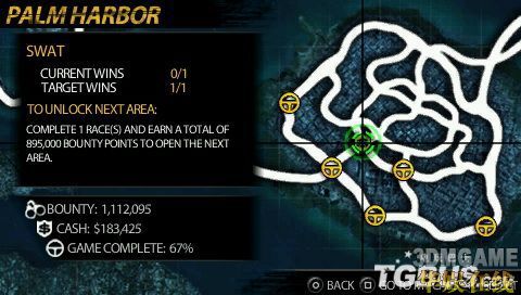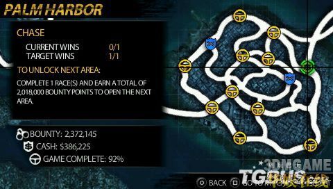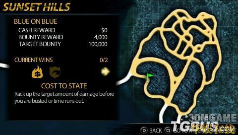 首先带来的是cost to state 赛程.此游戏模式就是在规定时间3分40秒内,尽可能在地图上进行破坏,不论是撞警车,撞障碍物或者撞城市中的任意车辆,只要把政府损耗消费达到10万就能过关了.过关后解开一部分外观部件.