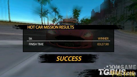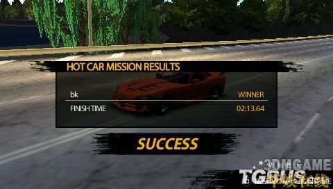 这次hot car的任务有了变化,就是在车子不被损坏的情况下到达终点,个人感觉这样子比较有挑战性.这场比赛的难点在于,对手车速很快(由于剧情需要对手的车跟你的完全一样),并且又有道路上各种车辆的自杀式冲撞以及警车的追捕.可谓惊心动魄.提起精神,一路小心.