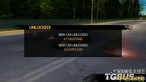 这小关出现了新的赛车方式: lap knockout, 玩过极品的玩家们应该都知道,每圈的最后一名被淘汰,到最后两名车手争夺第一名.在这条赛道上,笔者建议在一个直角弯轻按R1甩尾并且配合一下刹车接着上油门,再另一处有一个捷径尽量钻洞进去.这样子能节省路线并且保持速度不减.难度并不大,过关后解开两辆新车: 67 MUSTANG 以及 SOLSTICE GXP