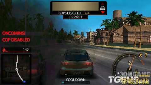 这个地图带来的关卡是POLICE追捕赛道.目标则是在规定的时间内,摧毁四辆追捕你的警车,就能过关了.