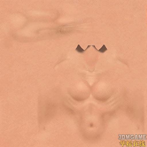 提取上面这张黑白图的白色部分(加强衣服褶皱的感觉),叠加到肉色那张图上,调整亮度、对比度、颜色至适当,得到下图: