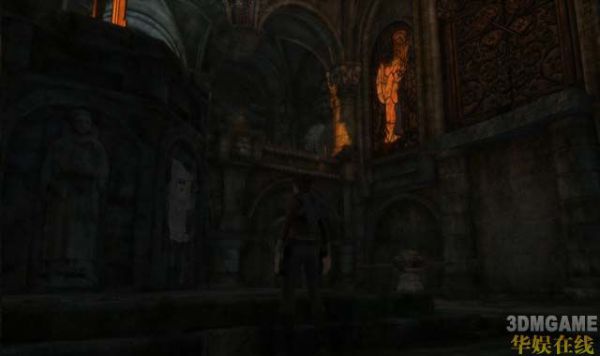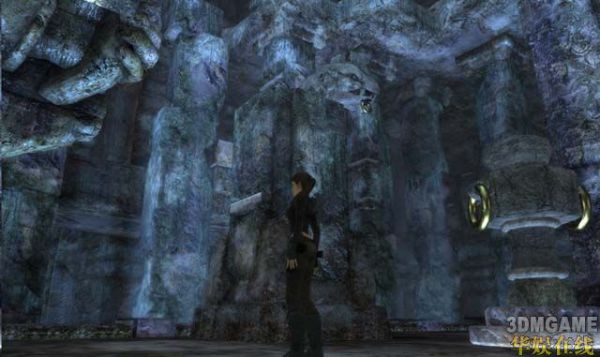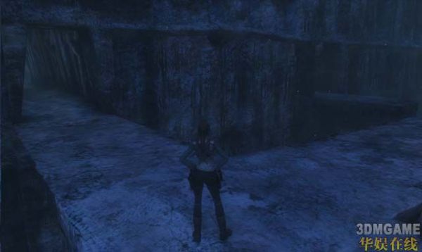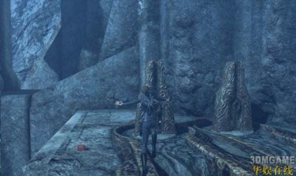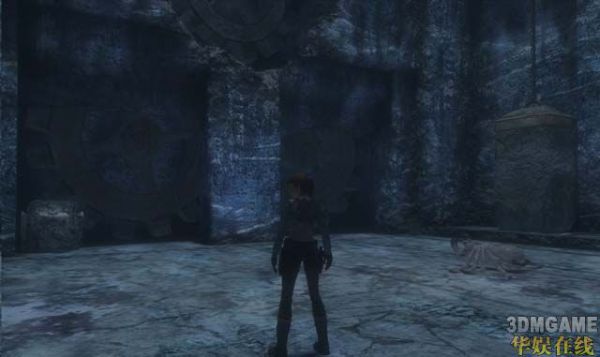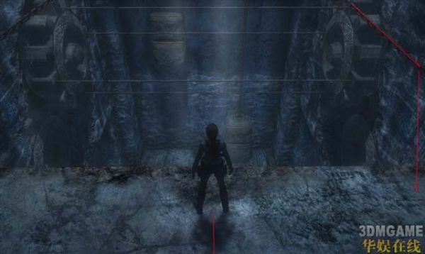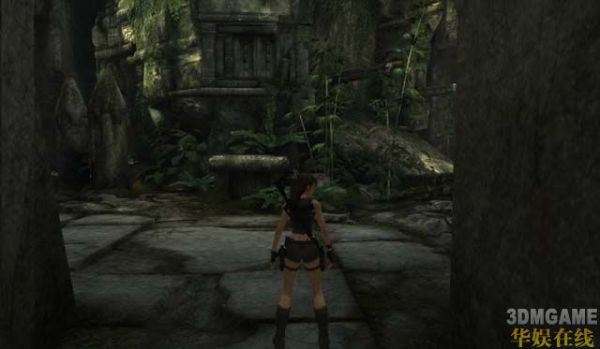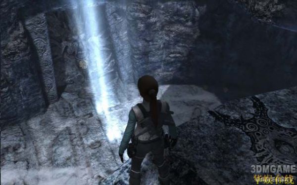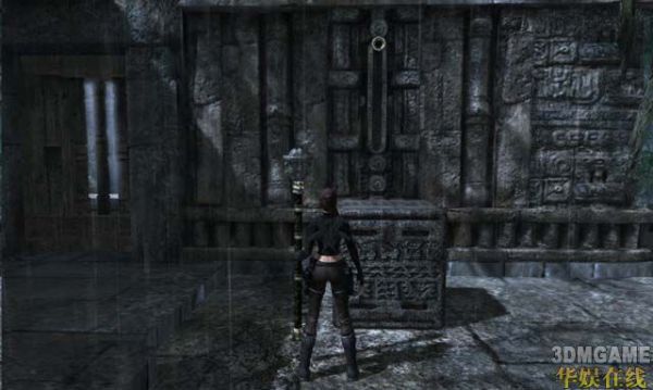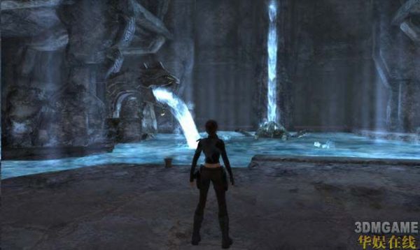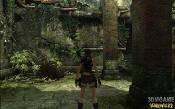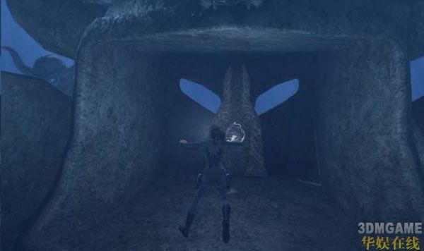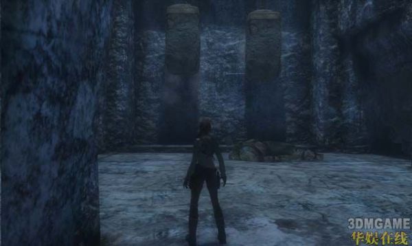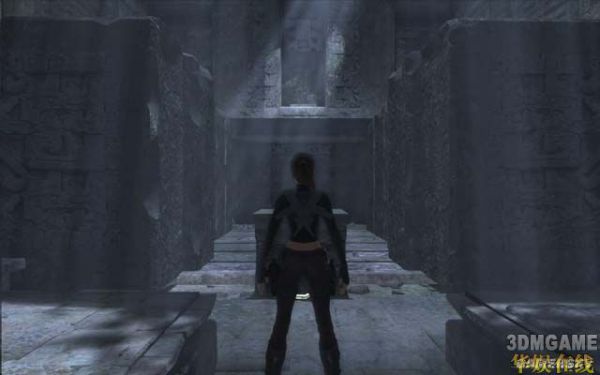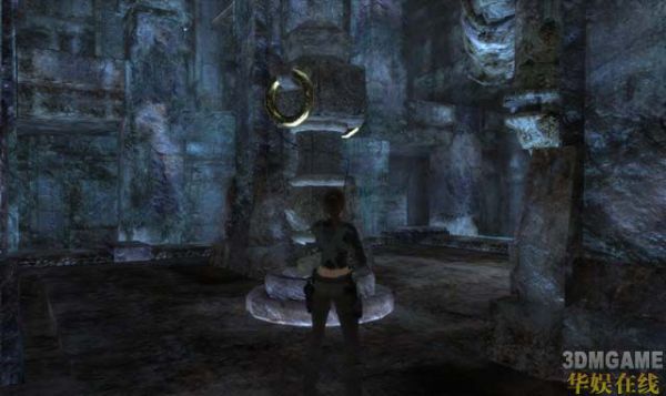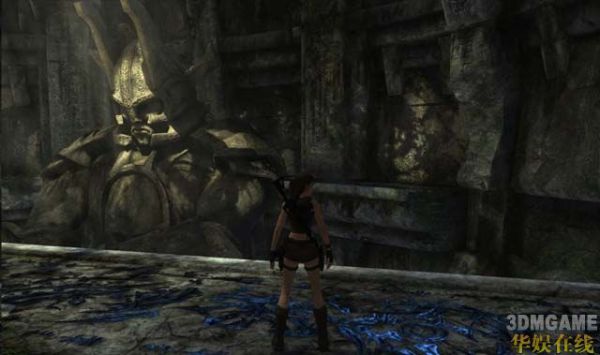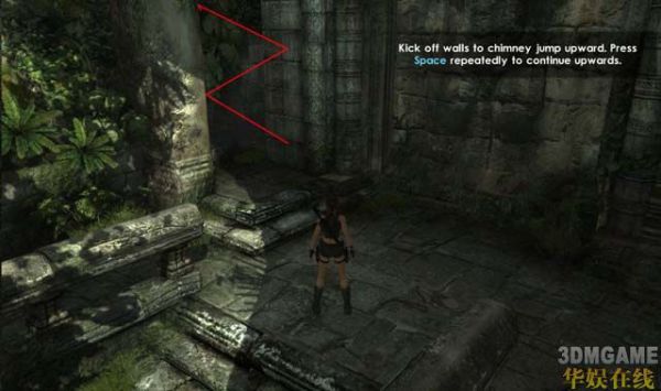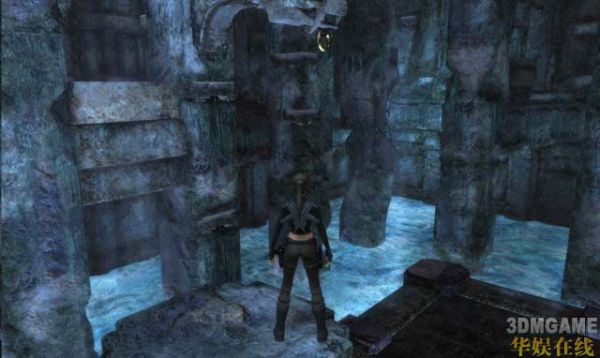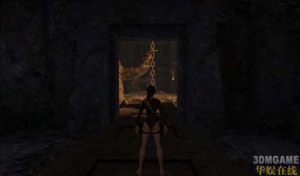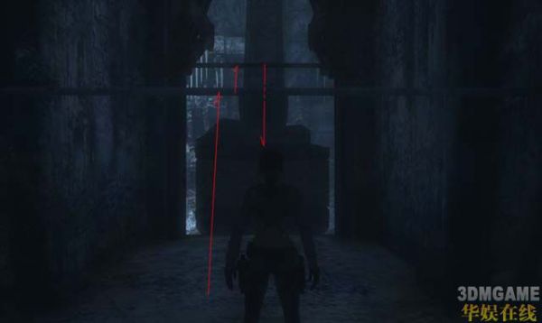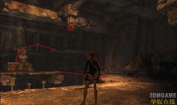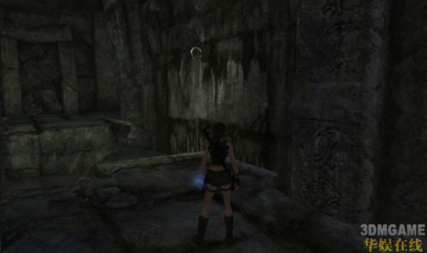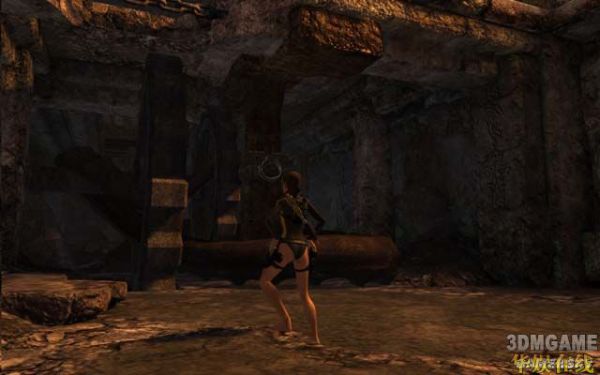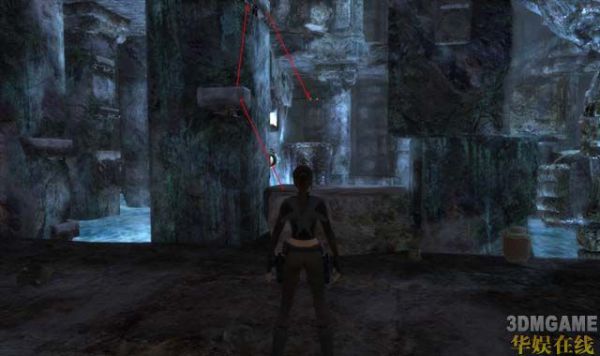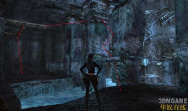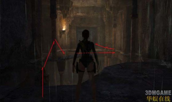 我们先走右边,如下图所示,从图右侧的洞中可以跳到到Lara所站的位置