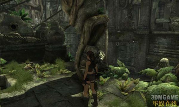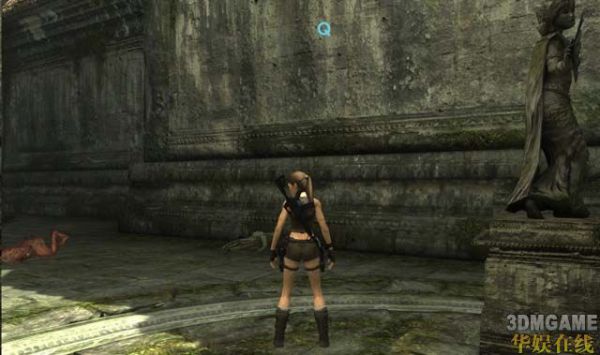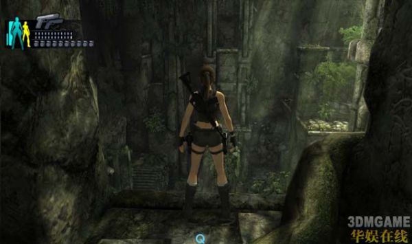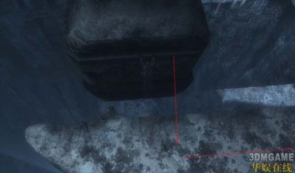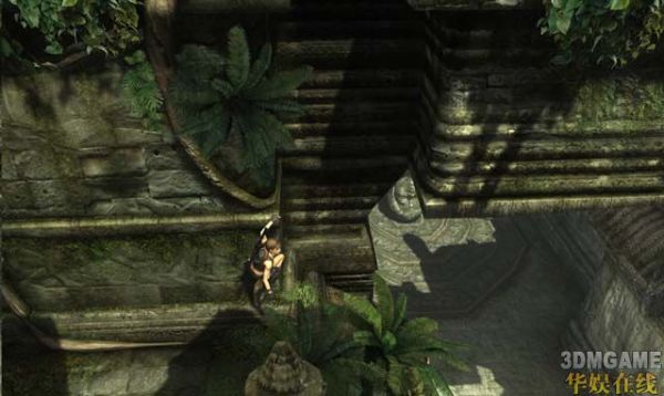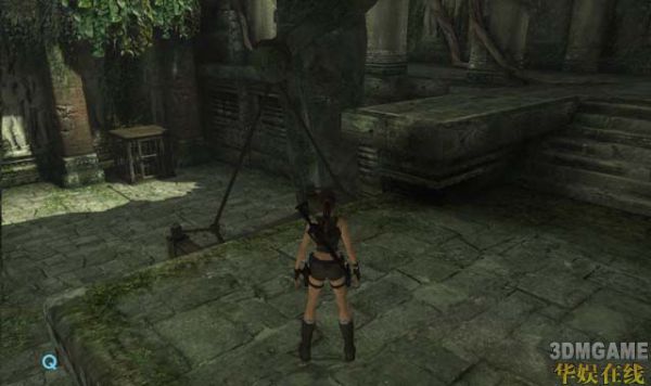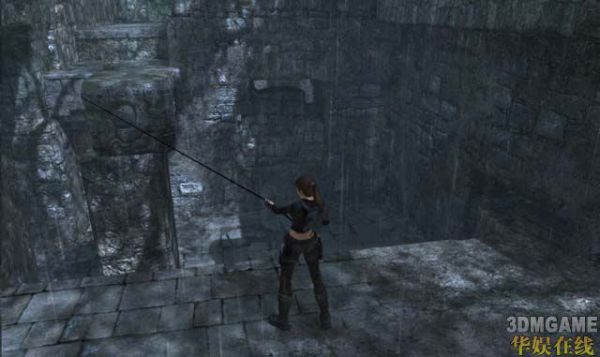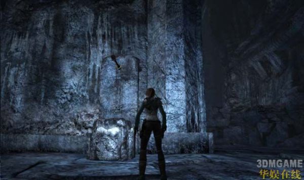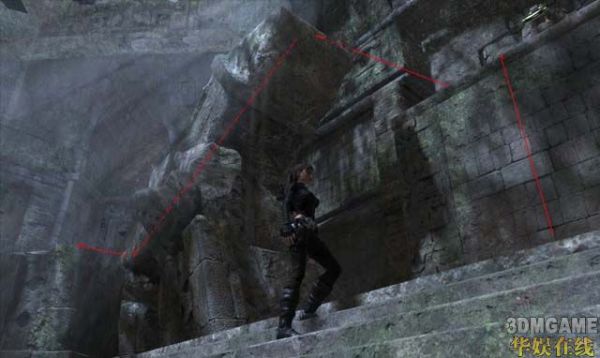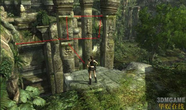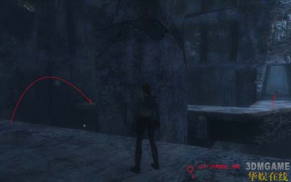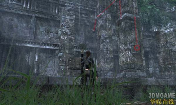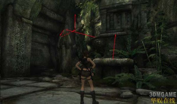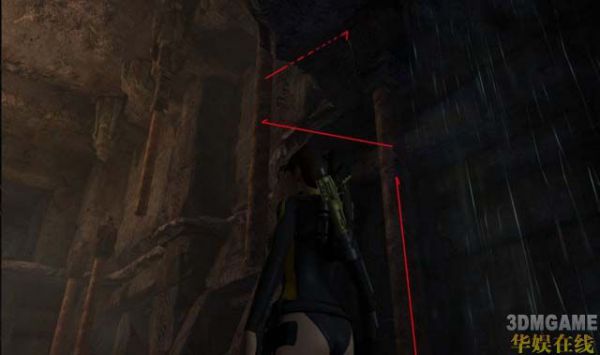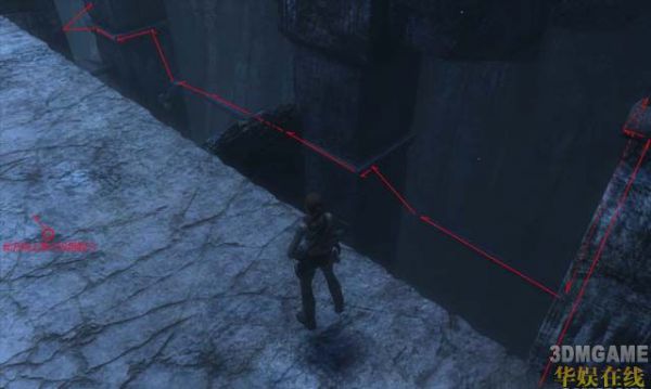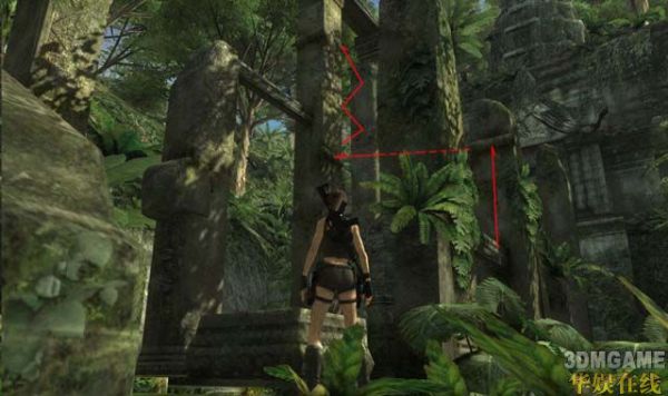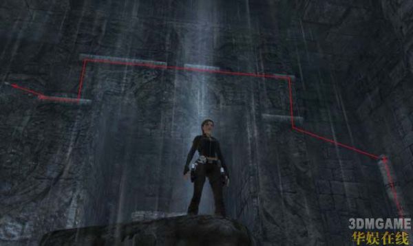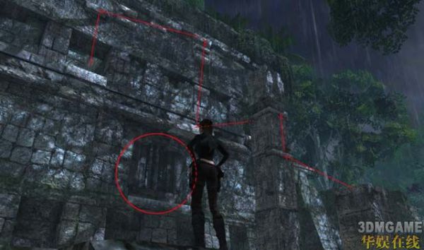 过来之后到达如图所示的位置,Lara正面的地方有可以抓的边缘