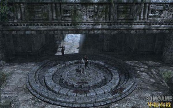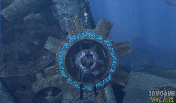 下水后找到有圆形浮雕机关门那座最大的遗迹,背对遗迹门口可以看到两座小一些的遗迹,左手边那座里面有开启机关门的圆盘钥匙,右手边的没有