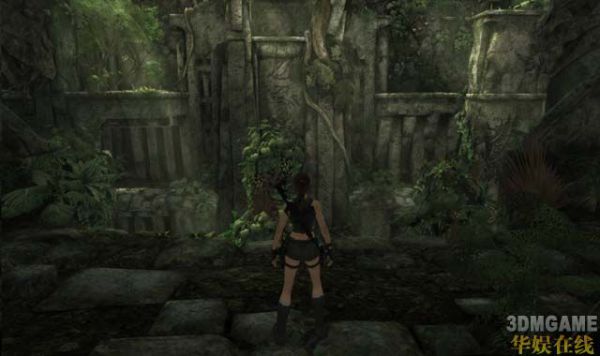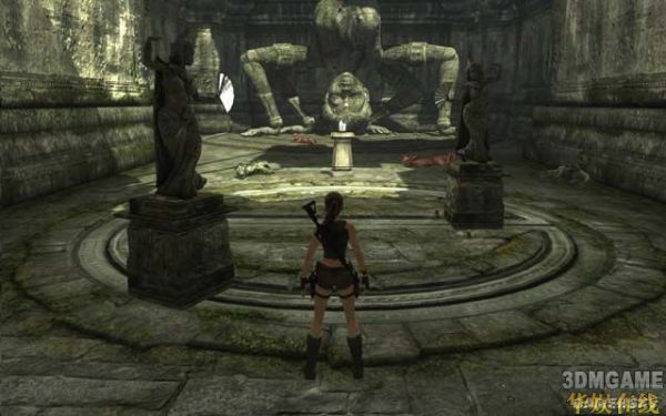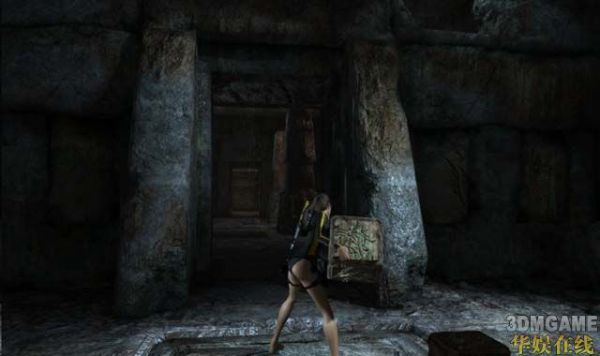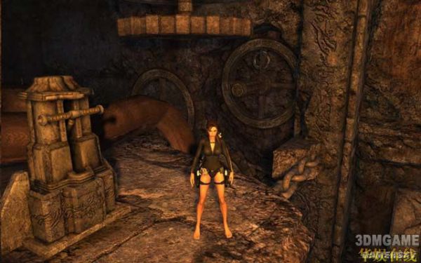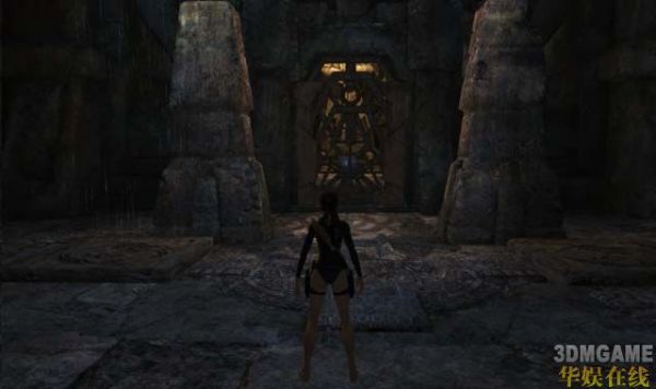 让Lara站在压力机关上,将方块扔出门去,然后利用方块开启刚才看见但是没有理会的机关