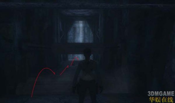 现在来到这个位置,按照箭头所示,一路跳到一个平台里,进入下一场景