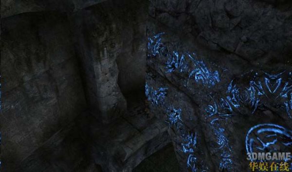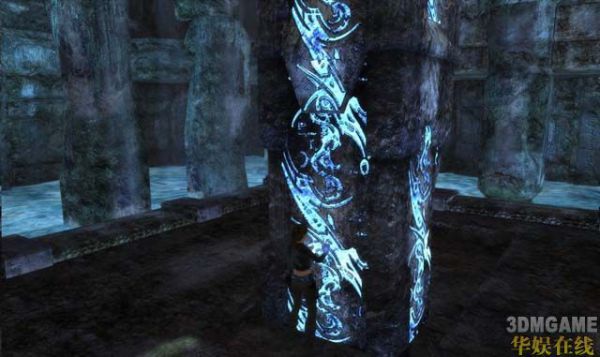 下图中有一个可以操作的浮雕标志,这样的标志一共有4个,其中入口墙壁上一个,出口墙壁上一个,中间断崖下的两条岔路柱子上各一个