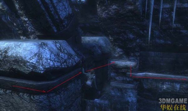 虽然路线不同,但是移动的方法还是与之前曾经路过的石锤相仿,如图所示进入洞穴