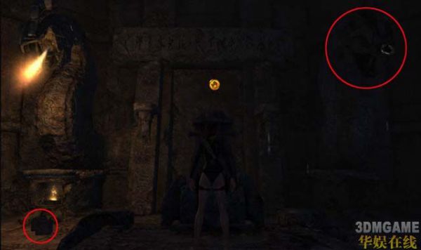 进入第一个大厅场景,如图所示圆圈的地方需要压下旁边的重量机关开启