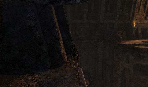 几乎没有什么挑战来到这个位置,现在Lara保持平衡站在一个柱子上,身后有个物品,我们是主线攻略,所以不管他,所以跳上右手的可抓边缘一直向前然后向上