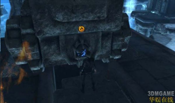 图中我们看到房间仍然是升降石锁的样式,通过的方法已经轻车熟路,不过与之前不同的是,头上的锁链是反向移动的,不断按E,快速移动到平台处
