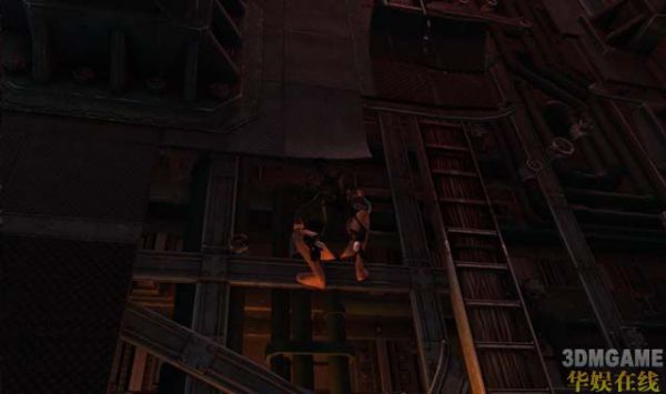 回来拉下开关,脚下的平台会掉落,这时自动启动超动作,在超动作中需要你及时按Q,抛出钩锁吊住墙上的吊环