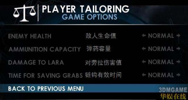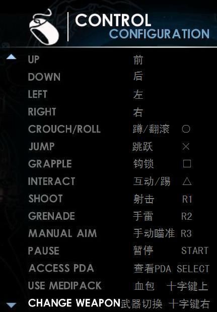 《古墓丽影:地下世界》按键设置翻译/菜单选项设置中英对照
