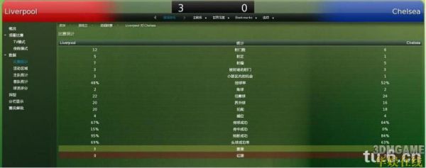 防线:回收5-7 。对付进攻球队防线压上只能自取其辱,你会发现球队被不停的打身后,我用Liverpool有一次上半场被West Brom打了个4:0;收缩的防线配合高进攻心态,一样会让对手经常越位,并且能经常看到中后卫在禁区里甚至门线上救球。