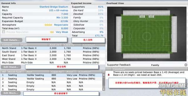 简单点来说,你对球场的建设会影响到上座率,影响到收入,甚至影响到你主场的成绩。