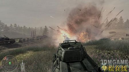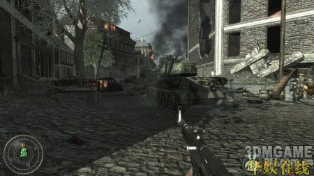 穿过破楼后会出现很多援军的坦克和敌军的坦克正在乱战,不要管它们,小心的往前面冲。在前方的一个小壕沟里可以拿到火箭筒,用它搞定敌军的坦克。继续往前杀,又是一个敌军的阵地,先清掉阵地外围的敌军,然后从阵地右边的一个入口冲进去。攻下敌人第一个高射炮后可以用它来攻击剩下的敌人(按F使用高射炮),火力相当的恐怖,非常好用。消灭完这里的敌人后会出现一段对白,这时千万不要以为任务结束了,立刻冲到前面,占下高台上的高射炮,敌人的士兵和坦克会对这个阵地来一波反攻,利用高射炮的强大火力消灭他们,守住这波反攻后本关结束。