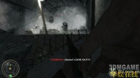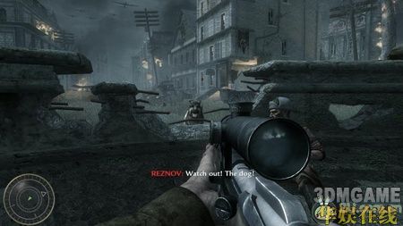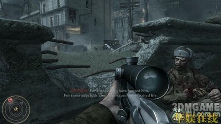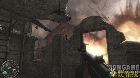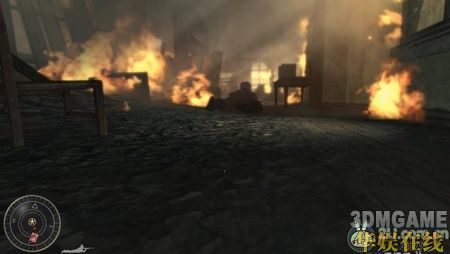 本关开始的剧情是我军战败,战友几乎都死掉了,剩下一个友军,他会给你一把狙击,听完他的话后,任务开始。先是用狙击消灭掉附近的几个敌人,这里会有一只军犬很快的冲过来,一定要小心这只军犬。一路跟着你的那位友军走,中间基本不需要杀人,只需要小心的跟着他就可以了。跟着他爬上一段楼梯后出现剧情,敌人发现了你们,并向房屋内喷射火焰,按CTRL趴着走就没事了,这里一定要跟进那个友军,不然很容易被杀死,接着你会被掉下来的房梁压着,友军过来救了你,然后敌人会炸掉这个楼,立刻从窗口那跳出去,再次触发剧情,一批友军过来救了你。