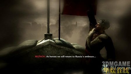 冲到大楼房顶后地上会有一个旗子,捡起旗子,触发最后的剧情,在你去插旗子的时候,一个敌人站起来对你开了一枪,接着你的战友拿着砍刀很残忍的把他杀掉(又有点暴力了),在友军的搀扶下你还是顺利的把象征胜利的旗子插了上去。游戏任务部分全部结束,属于你的战火世界终于结束。