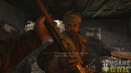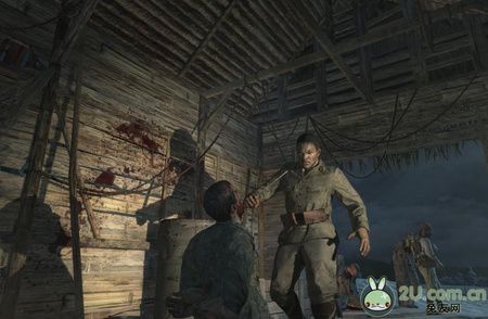 游戏刚开始,本作一直宣传的“黑暗”便得到了体现,一开始就是一段血腥的剧情CG,你和一个友军(悲剧人物,游戏中第一个牺牲的战士)被一拨小日本绑在一个小屋里,你只能眼睁睁的看着亲密的战友被鬼子虐待,然后杀掉,建议未成年人直接跳过,不要观看。接着你的援军很及时的在你牺牲之前赶过来救了你,从友军手里接过枪和头盔,你的世界大战由此揭开序幕。